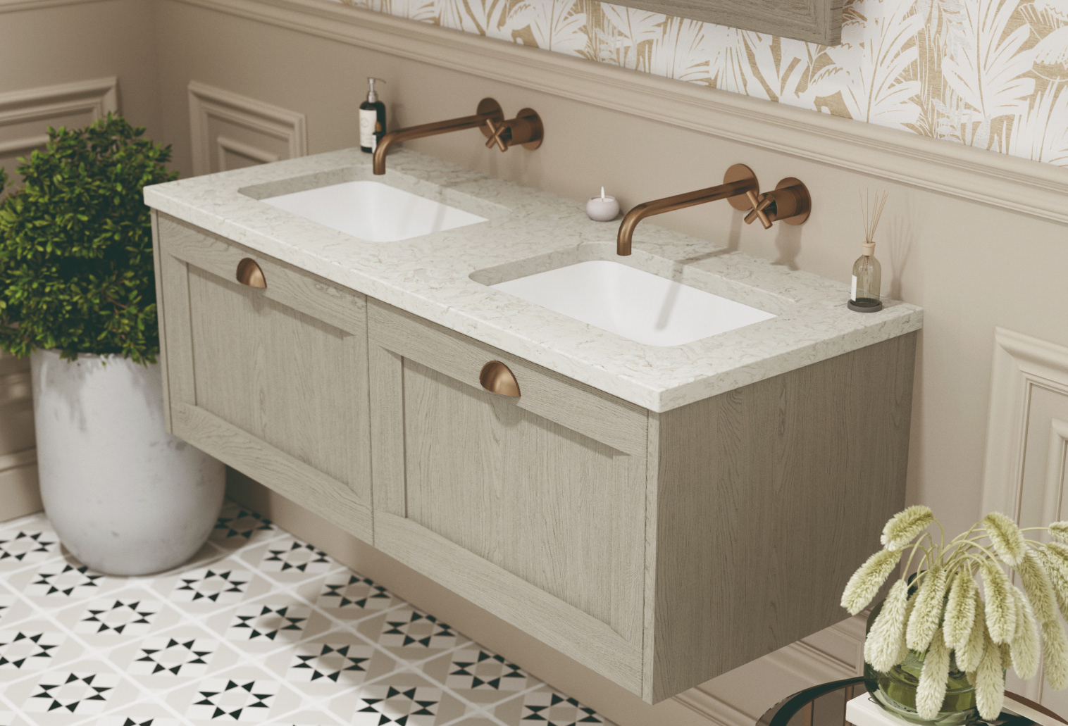 The Italy Shaker Collection blends timeless craftsmanship with contemporary refinement, reimagining the classic shaker design for today’s interiors. Created using real wood ash Veneered panels, drawer fronts and solid ash legs, it is offered in a curated palette of 18 painted finishes or bespoke RAL colour options, it allows full personalisation, complemented by a selection of elegant handles. Blum Soft-close drawers enhance the sense of luxury, while the option of quartz countertops provides versatility for both undermount and deck-mounted basin, installations. Italy Shaker is a seamless balance of tradition and contemporary elegance, crafted for lasting style. Includes branded internal accessory trays - Made in the UK